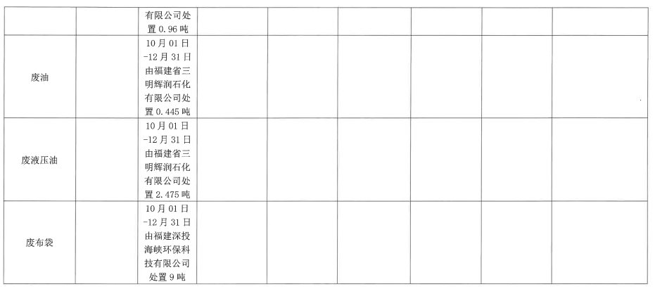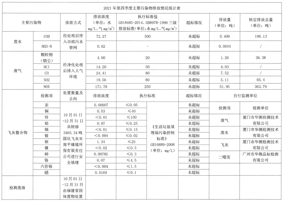2021年第四季度企业事业单位应当公开的环境信息表