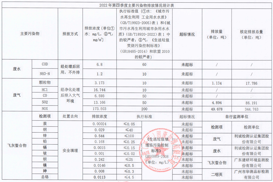 2022年第四季度企业事业单位应当公开的环境信息表