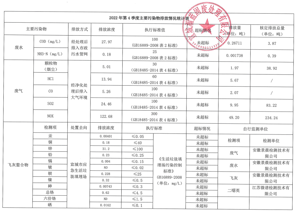 2022年第四季度企业事业单位应当公开的环境信息表