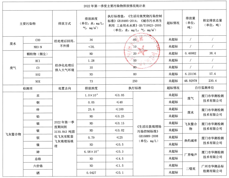 2022年第一季度企业事业单位应当公开的环境信息表