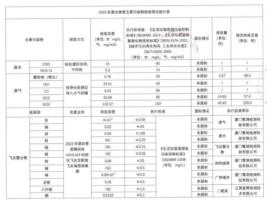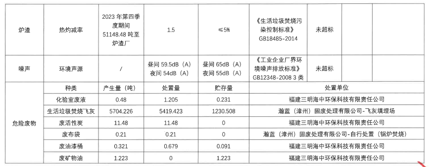 2023年第四季度企业事业单位应当公开的环境信息表