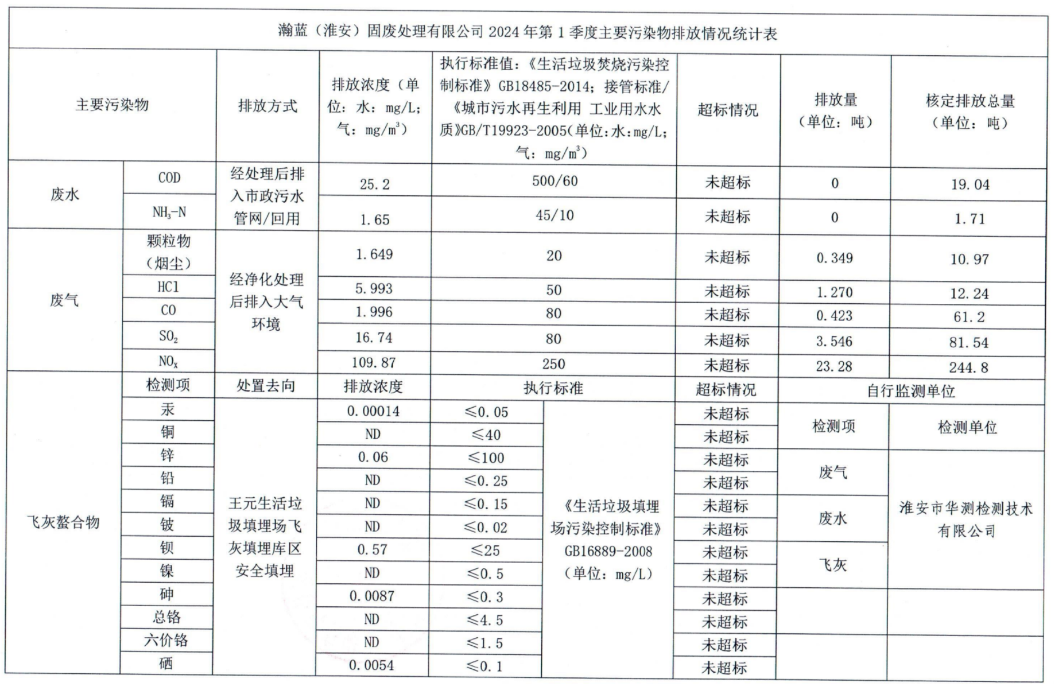 2024年第一季度企业事业单位应当公开的环境信息表