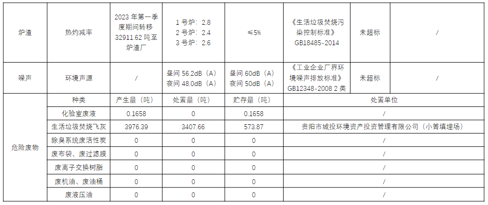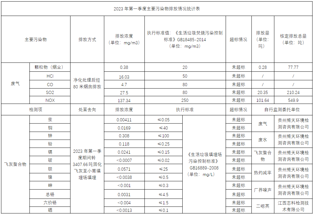 2023年第一季度企业事业单位应当公开的环境信息表