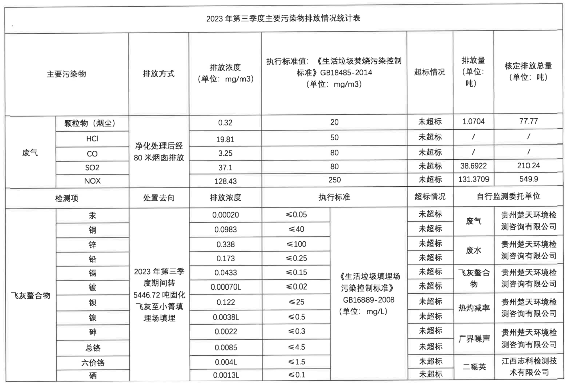 2023年第三季度企业事业单位应当公开的环境信息表