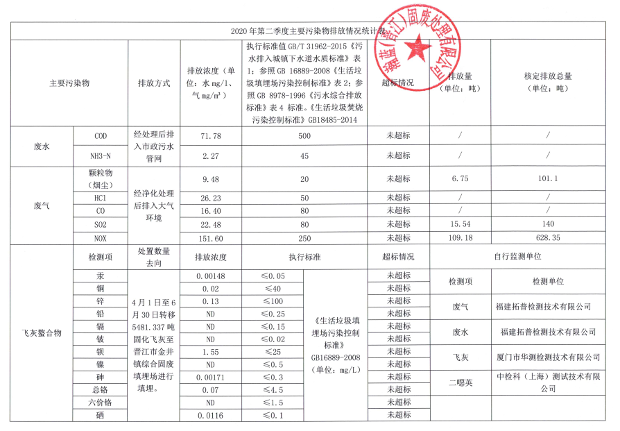 2020年第二季度企业事业单位应当公开的环境信息表